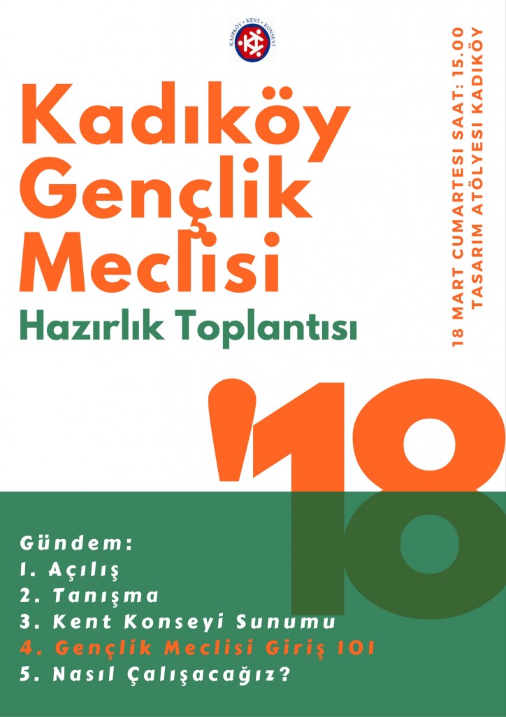 Kadıköy Kent Konseyi Gençlik Meclisi’ni oluşturmak üzere 18 Mart Cumartesi Günü, Tasarım Atölyesi Kadıköy’de bir araya geliyoruz.